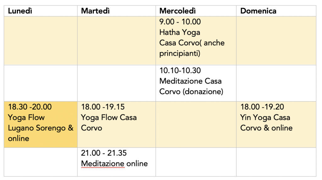 La lezione di meditazione di mercoledì mattina è su donazione. Lascia quello che vuoi e che puoi.