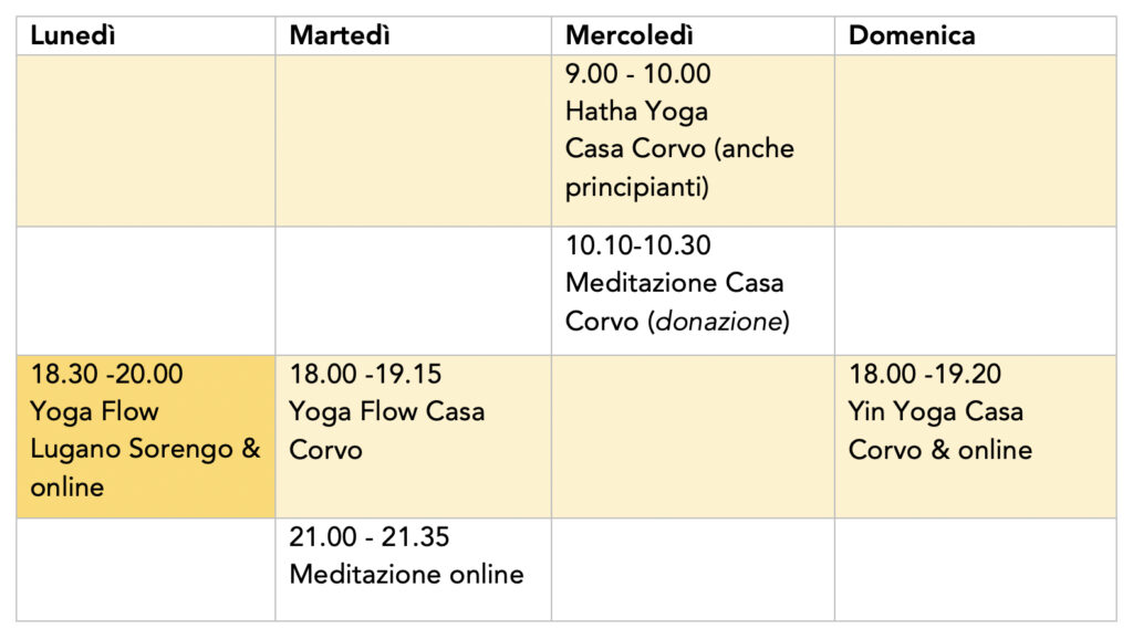 La lezione di meditazione di mercoledì mattina è su donazione. Lascia quello che vuoi e che puoi.